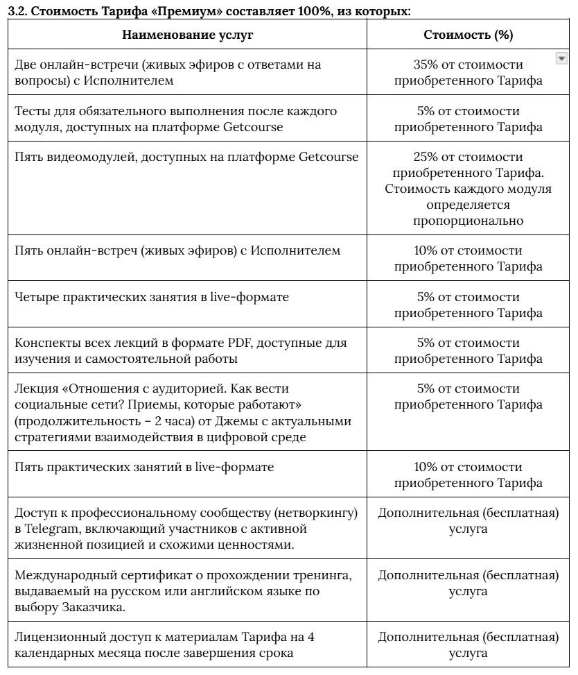 2.8.3. Все иные материалы, сервисы, доступ к чатам, дополнительным встречам, каналам, инструкциям, методическим и иным вспомогательным ресурсам, а также любые иные элементы, не указанные как платные в Приложении № 1, считаются дополнительными бонусными услугами, предоставляемыми Исполнителем по своему усмотрению.