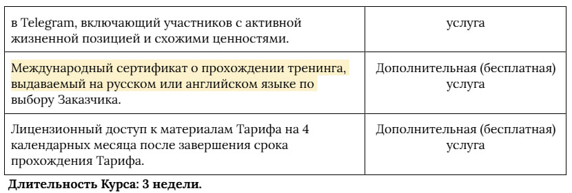 1.1.2. Принять участие в курсе в рамках тарифа «Полный пансион» могут только Заказчики, имеющие сертификат о прохождении базовой ступени курса.