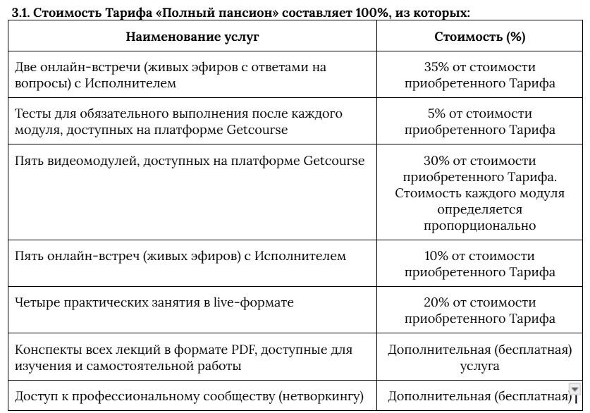 3.12.1. Предоставление доступа Заказчику к информационным материалам Курса и начало оказания Комплекса услуг возможны исключительно после полной или частичной предоплаты в соответствии с выбранным Тарифом.